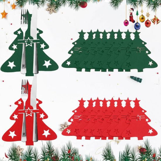 Nikcorp Božićni držači za pribor za jelo 16 kom, set za dekoraciju stola, filc, oblik božićnog drvca, crveni i zeleni