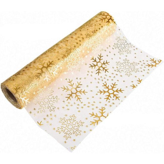 Netscroll Elegantni zlatni namizni tekač 300 x 28 cm, sjajna folija na mrežastoj teksturi, za božić, vjenčanja i svečane prilike, božićni dekor za stol, SnowFlake.