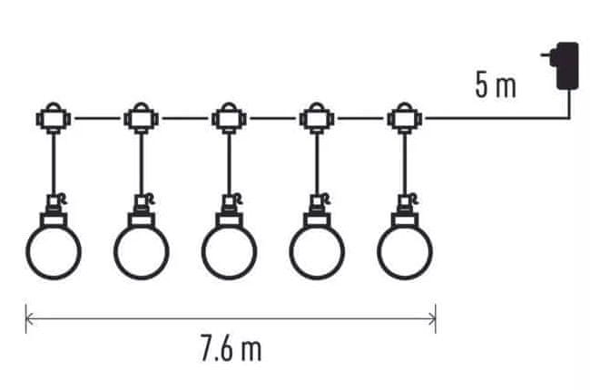 EMOS 20 LED svjetlosni lanac, Party svjetla, okrugli, 7,6 m