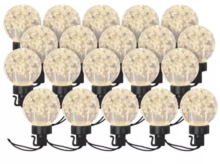 LED svjetlosni lanac koji se sastoji od 20 okruglih Party lampica i može se koristiti u otvorenim i unutarnjim prostorima. Osvjetljava prostoriju toplim bijelim svjetlom.
