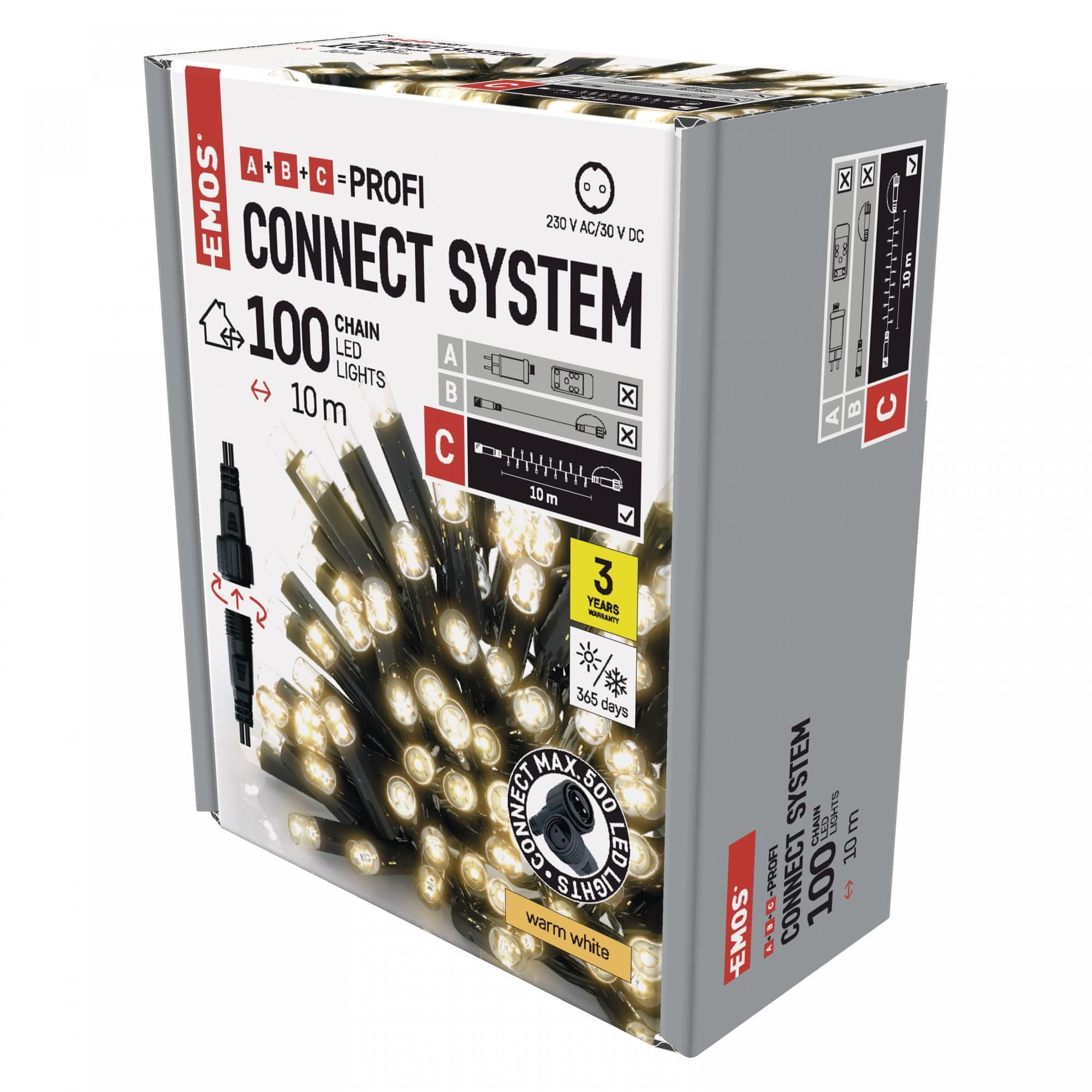 EMOS Profi LED spojni lanac, crni, 10 m, vanjski/unutarnji, toplo bijeli