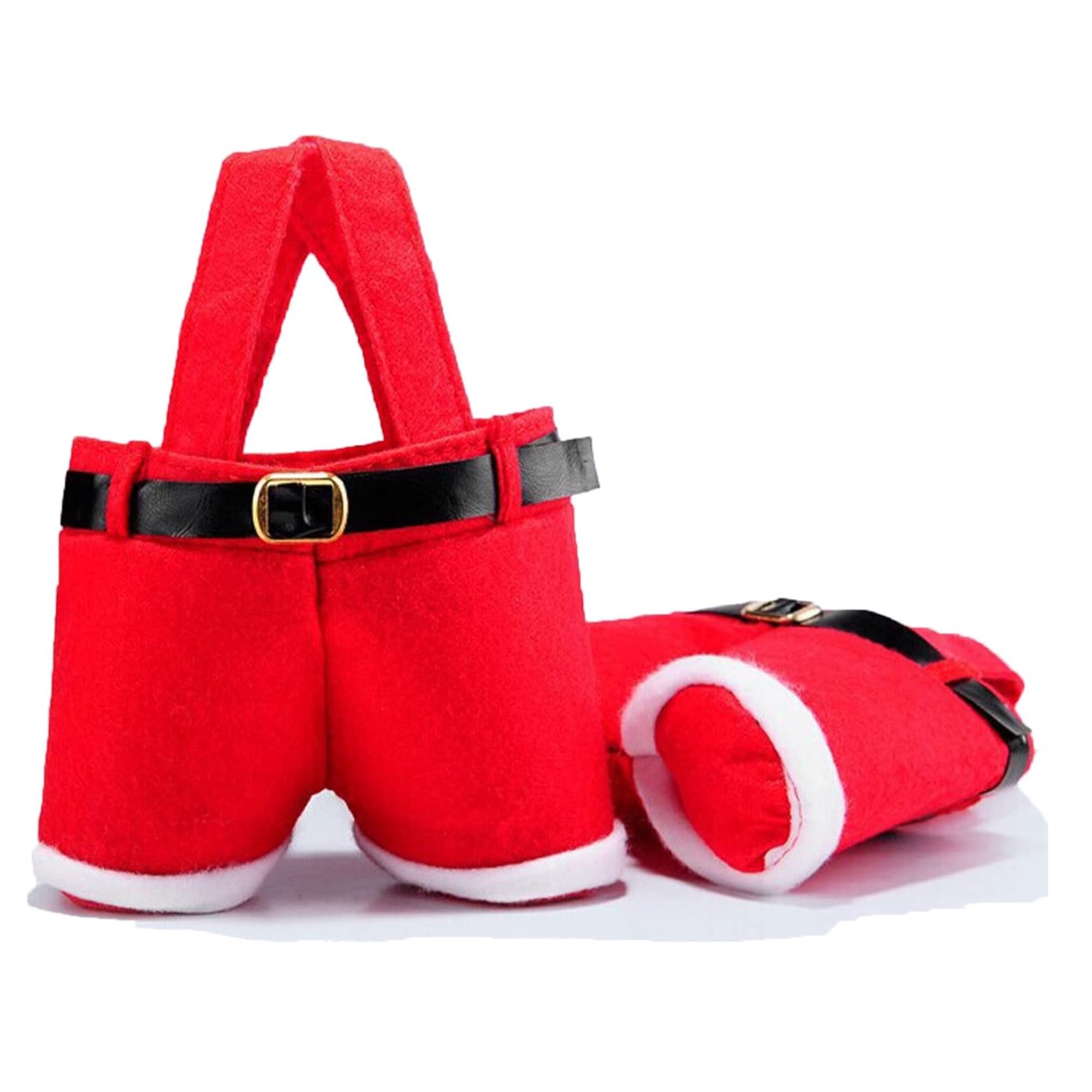 Dizajnirane u obliku hlača Djeda Božićnjaka, ove crvene božićne vrećice mogu se koristiti za pohranu čokolade, slatkiša ili drugih poslastica.