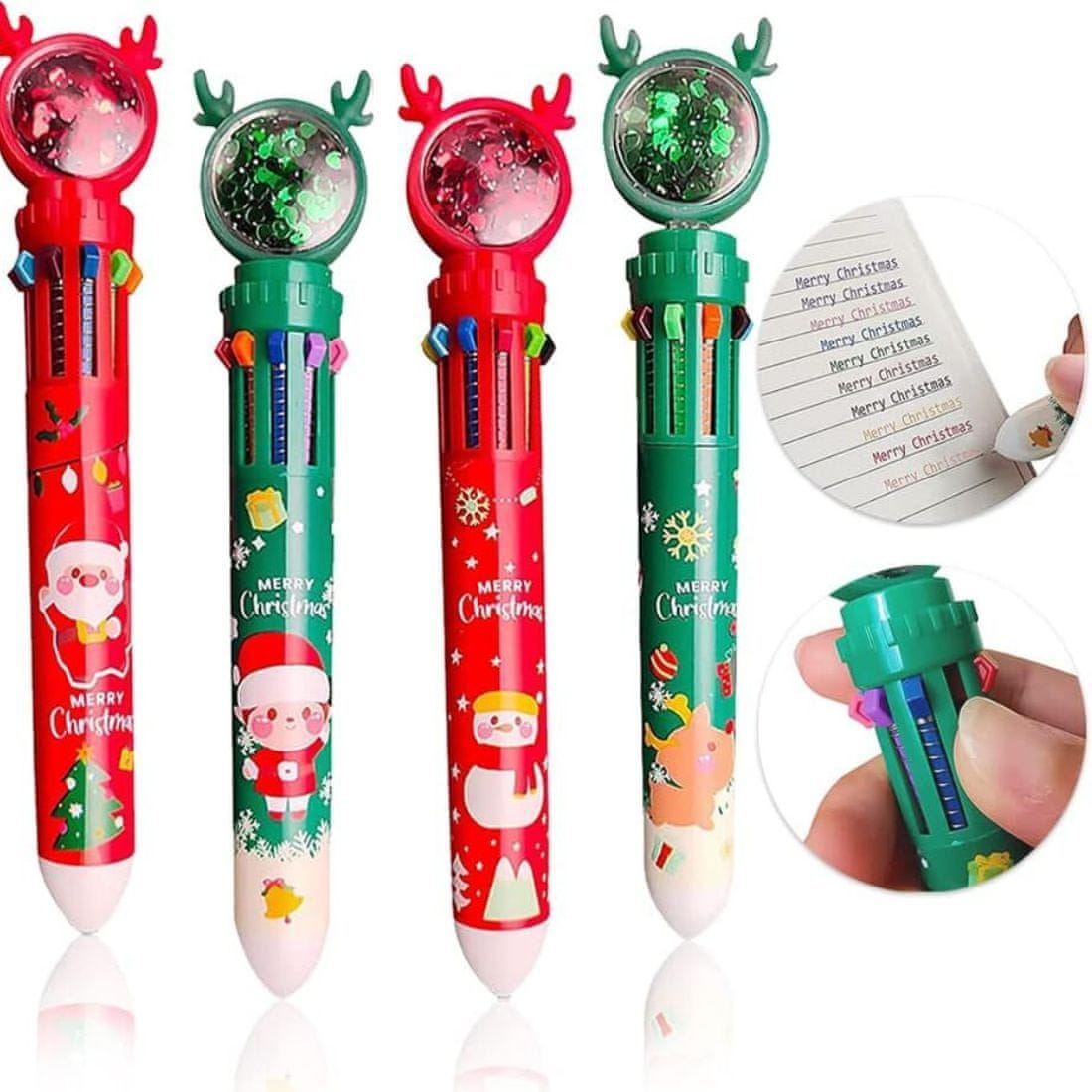JOJOY® Višebojna božićna olovka 10 u 1, set 2 kom, zelena i crvena, olovka za pisanje i crtanje | RUDYPEN