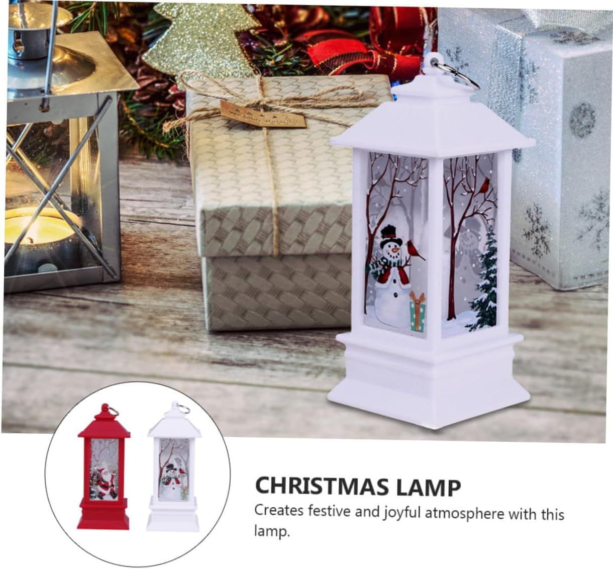 Netscroll LED božićna lanterna s motivom snjegovića i Djeda Božićnjaka, 2 kom, toplo bijelo svjetlo, bežična dekoracija za stol, policu ili balkon, LanternLights
