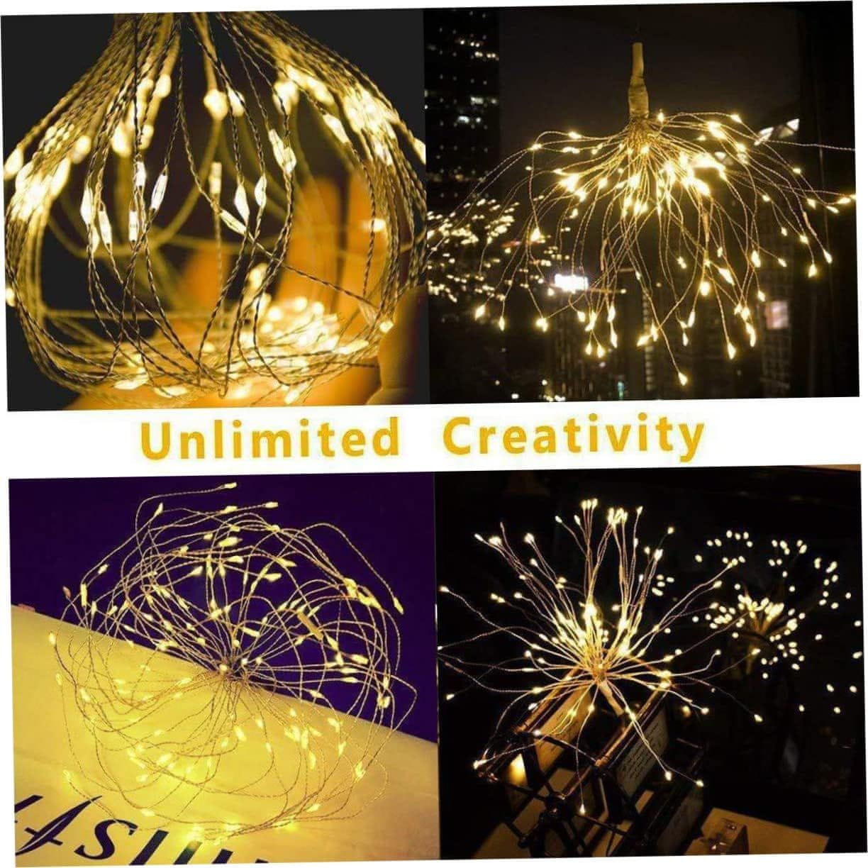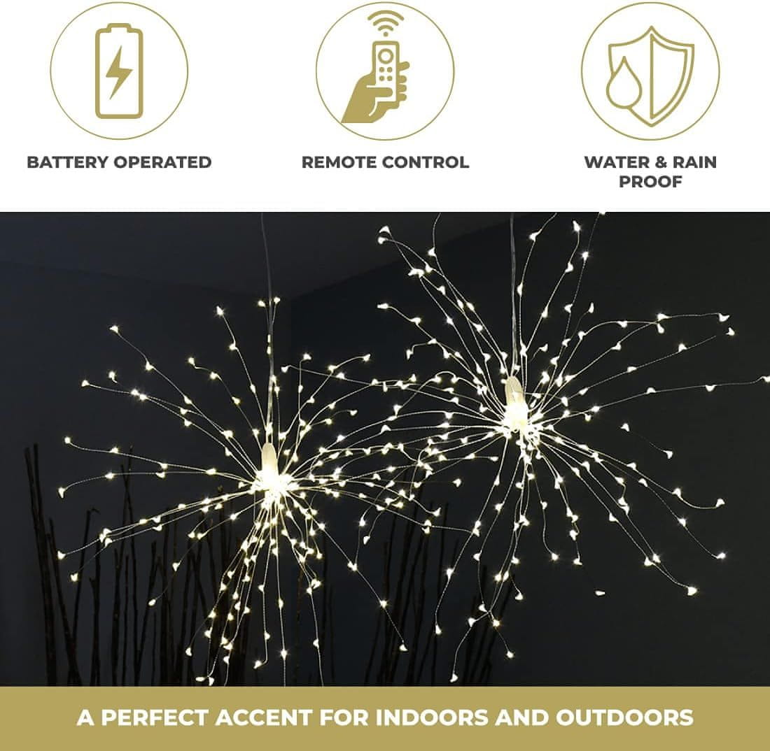 Netscroll LED dekoracija s efektom vatrometa, 120 žutih LED lampica, novogodišnje božićne LED lampice, 8 načina treptanja, daljinski upravljač, za unutarnju i vanjsku upotrebu, FireworkLed