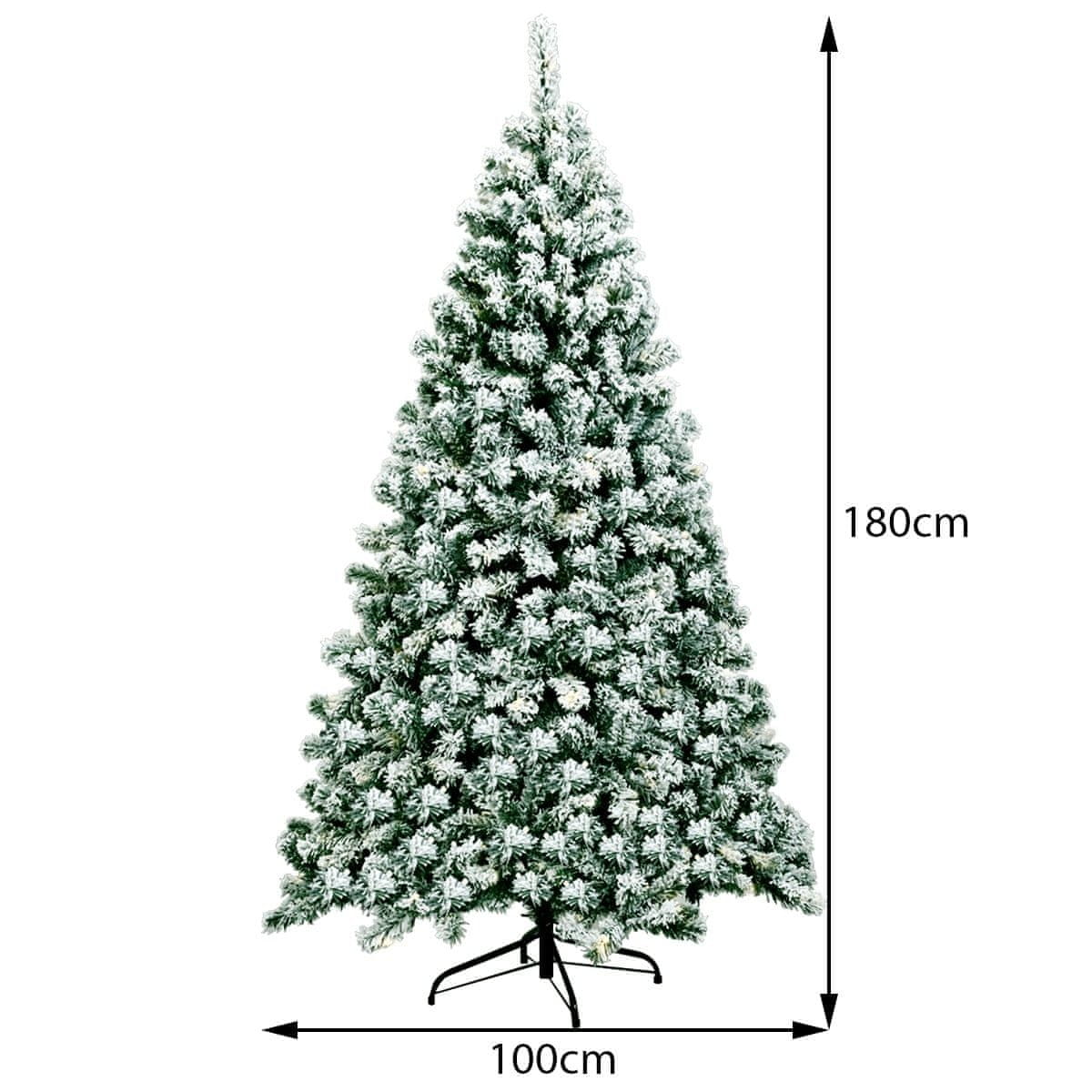 Umjetno božićno drvce visine 180 cm s 928 gustih grana i 250 toplih LED lampica pruža elegantan snježni izgled uz stabilno metalno postolje i jednostavno sastavljanje za dugotrajno blagdansko uređenje.