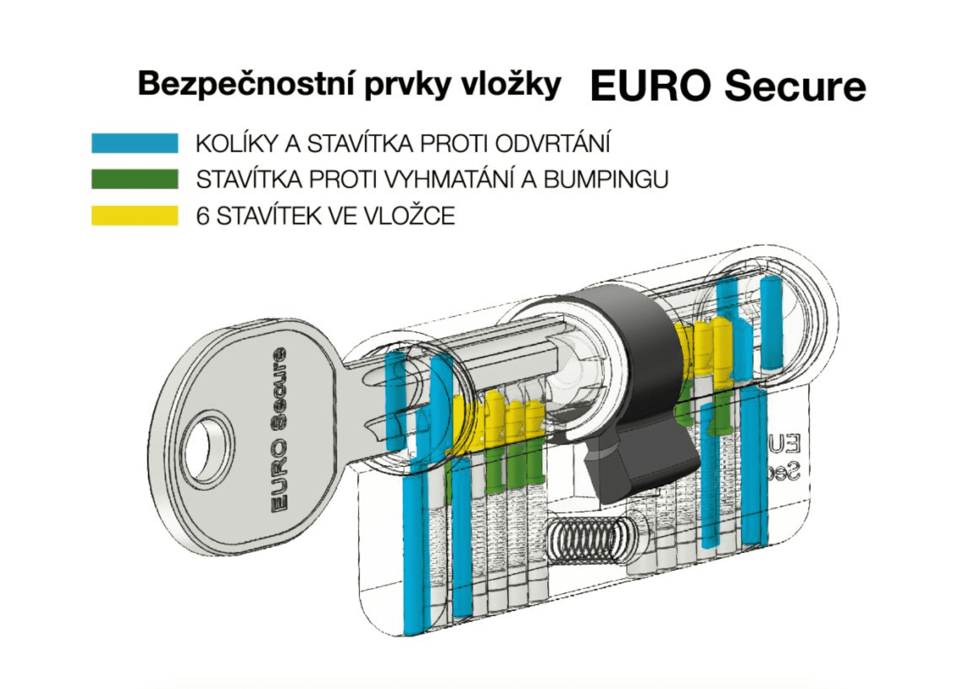 - Zaštita od bušenja pomoću 6 elemenata izrađenih od kaljenog čelika. Sastoji se od 5 pinova i 1 pina