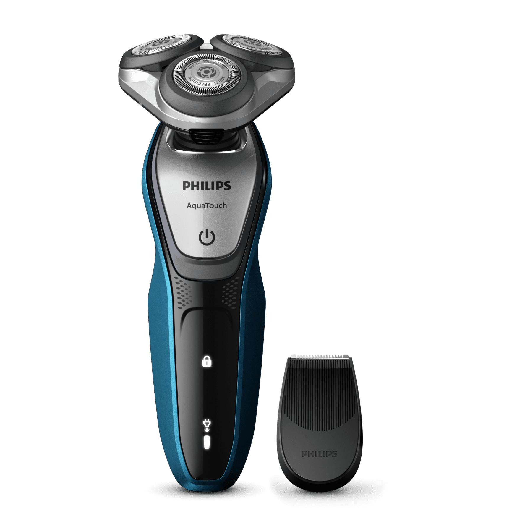 Muški električni aparat za brijanje, pogodan za mokro i suho brijanje. Aparat za brijanje Philips Series 5000 S5885/35 ima 360-D rotirajuće glave koje prate obrise lica za optimalan kontakt s kožom i senzor koji automatski prilagođava snagu za jednostavno i nježno brijanje.