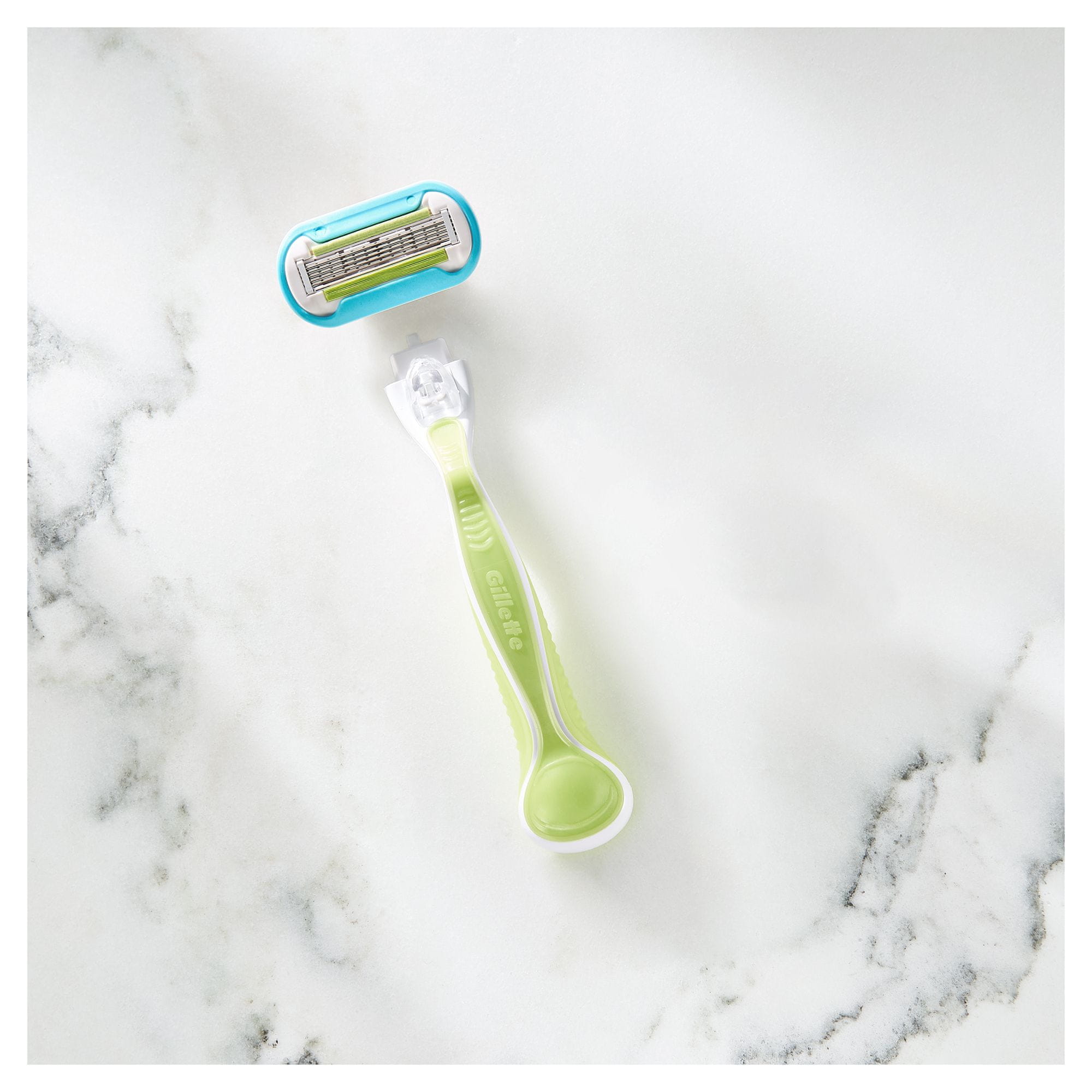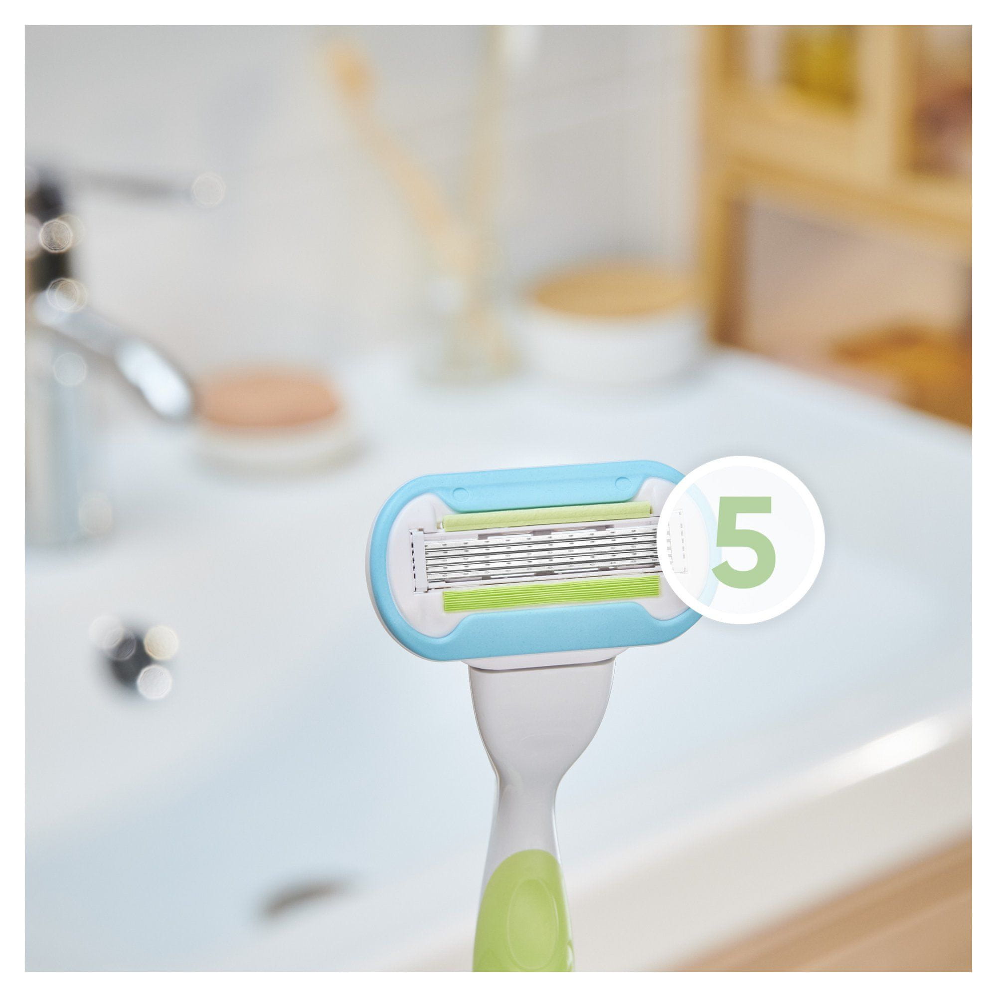 Britvica Venus Extra Smooth vam pruža ugodno i glatko brijanje. 5 oštrica s premazom sličnim dijamantu brzo i bez komplikacija uklanja dlake. Zaštitna vlažna traka osigurava sigurno brijanje i produžuje osjećaj glatke kože.