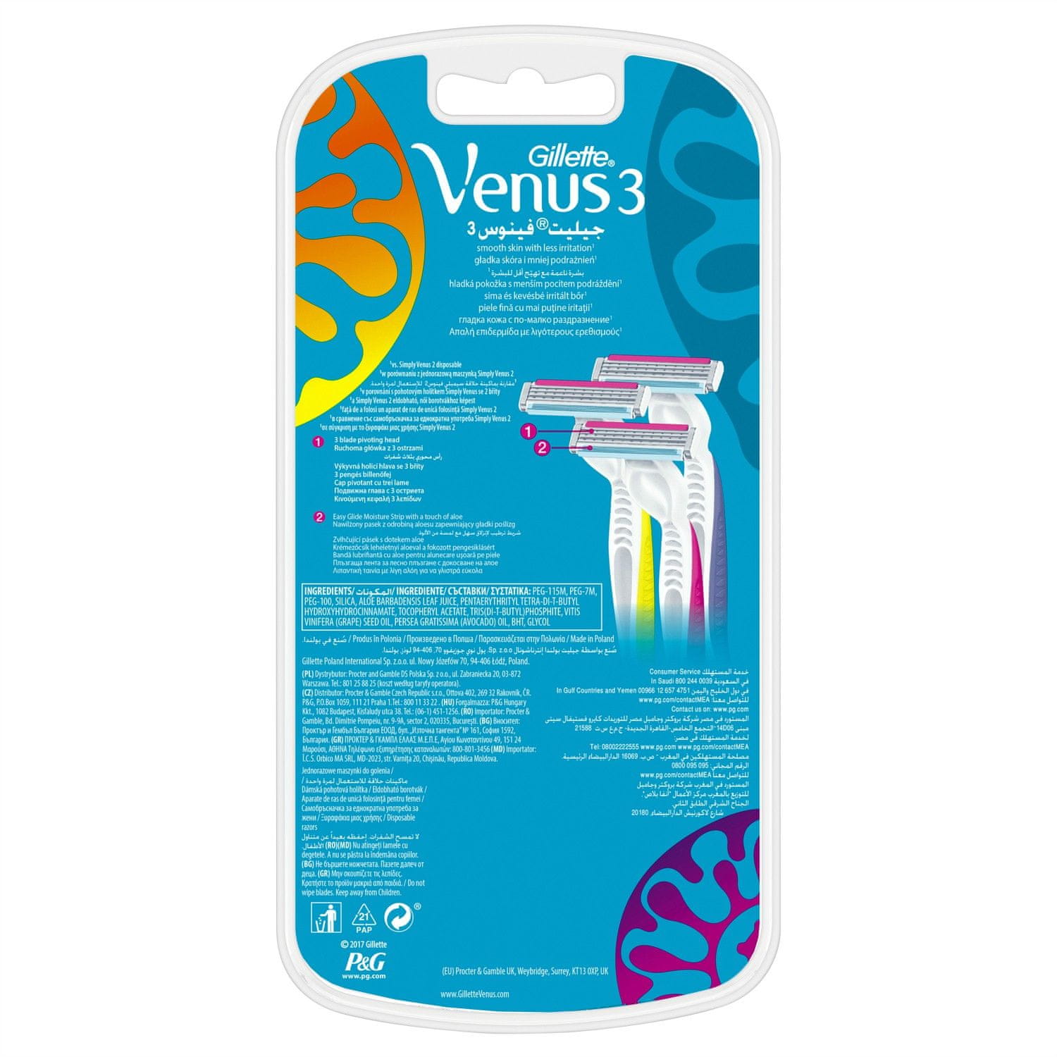 Gillette ženska britvica Venus3 Dispo Multicolor, 3 komada