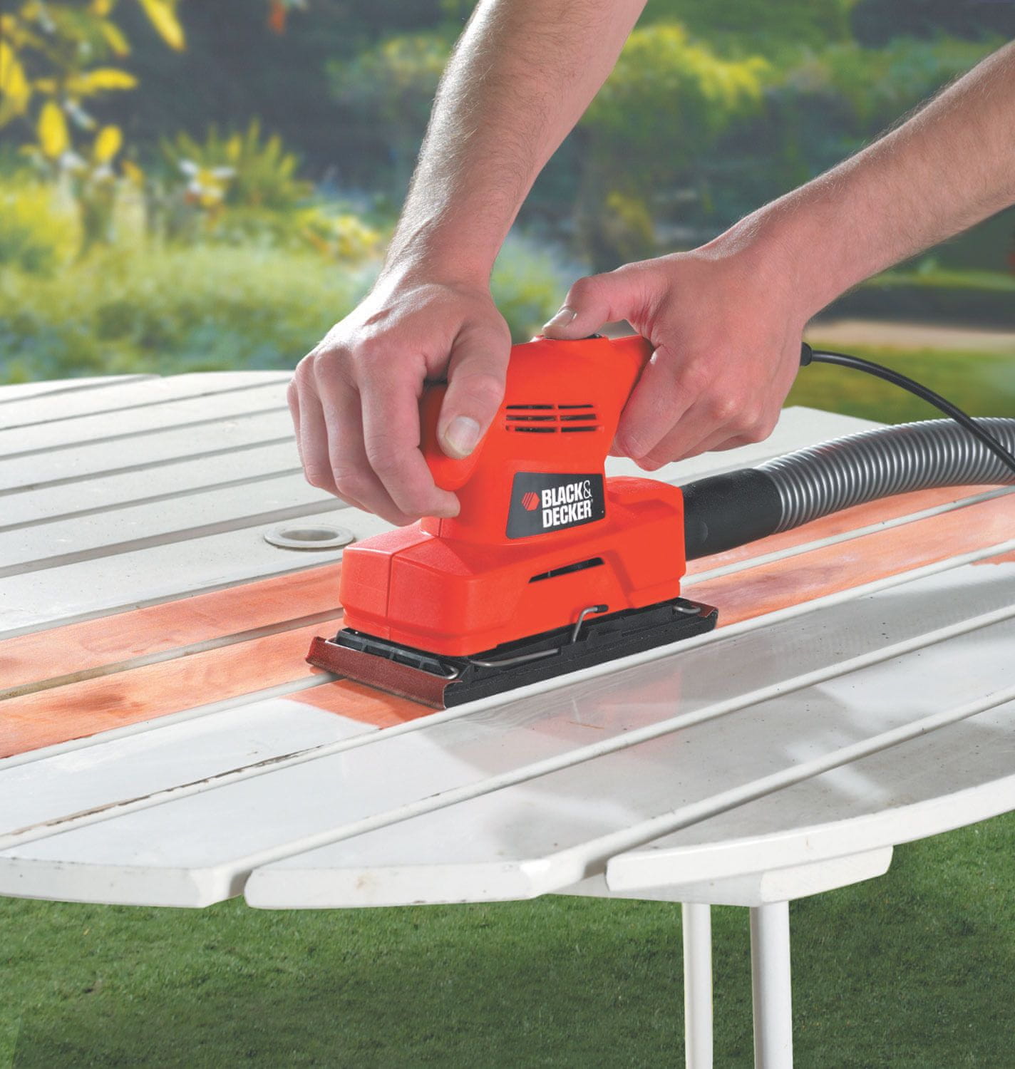 Vibracijska brusilica Black & Decker KA300 odličan je dodatak za brušenje velikih površina. Izmjena brusnog papira je brza i jednostavna.