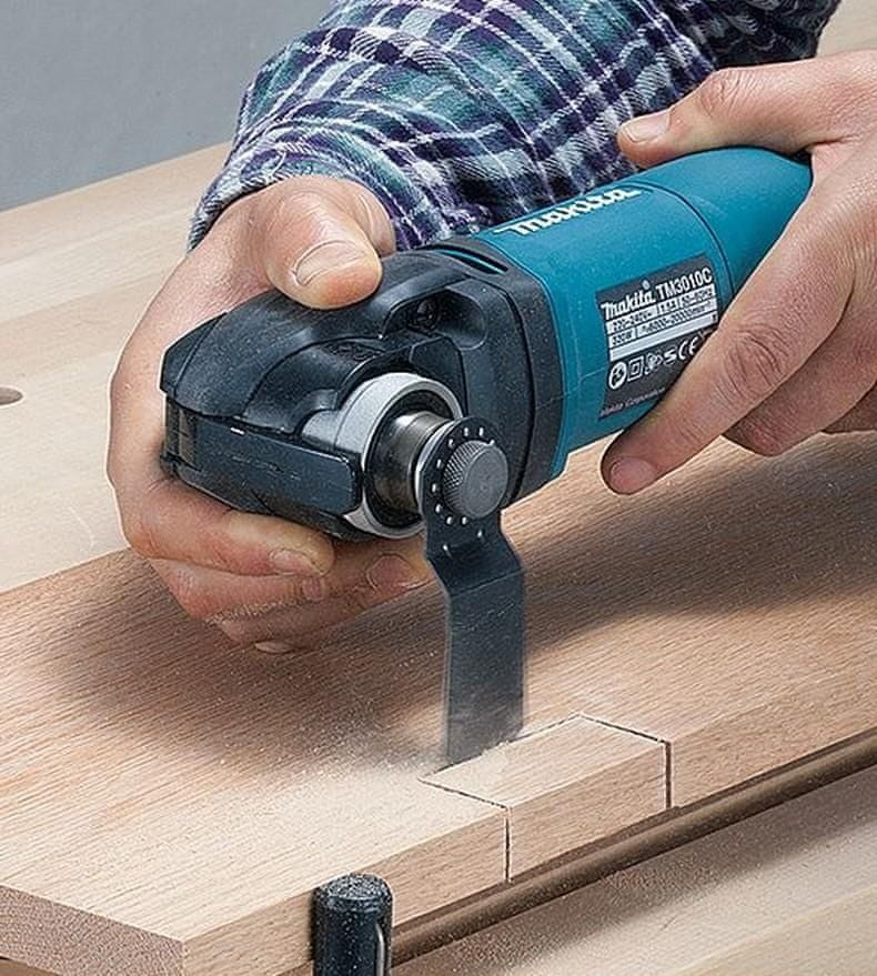 Makita TM3010CX6J višenamjenski alat koji podržava 12 postavki kuta za montažu pribora koji se mogu pričvrstiti svakih 30 stupnjeva. Ima meki start za precizan početak rezanja, stalnu brzinu pri opterećenjima i jednostavnu instalaciju i zamjenu dodataka. Uključeno je plastični kovčeg Makpac, višenamjenski adapter za alat, BIM segmentni list pile, brusni disk za samofiksirajuće oštrice i BIM list pile za drvo i metal.
