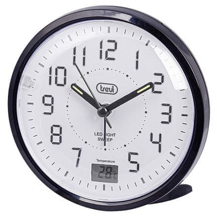 S kvarcnim satom Trevi SL 3P27 uvijek možete pratiti vrijeme i izbjeći nepotrebna kašnjenja. Zahvaljujući tihom Sweep mehanizmu u kontinuiranim sekundama, jamči vam miran odmor bez dosadnog otkucavanja kazaljki. Na Trevi satu možete postaviti alarm, koji se aktivira elektroničkim prstenom, na vrijeme koje želite, a zatim pritisnuti gumb Odgodi alarm na vrhu uređaja kako biste privremeno zaustavili alarm. Super LED pozadinsko osvjetljenje omogućuje vam jednostavan pregled SL 3P27 čak i noću. Mali okvir na dnu brojčanika je koristan, gdje možete pronaći temperaturu, tako da je uvijek možete pratiti i ne brinuti se o čestim promjenama.