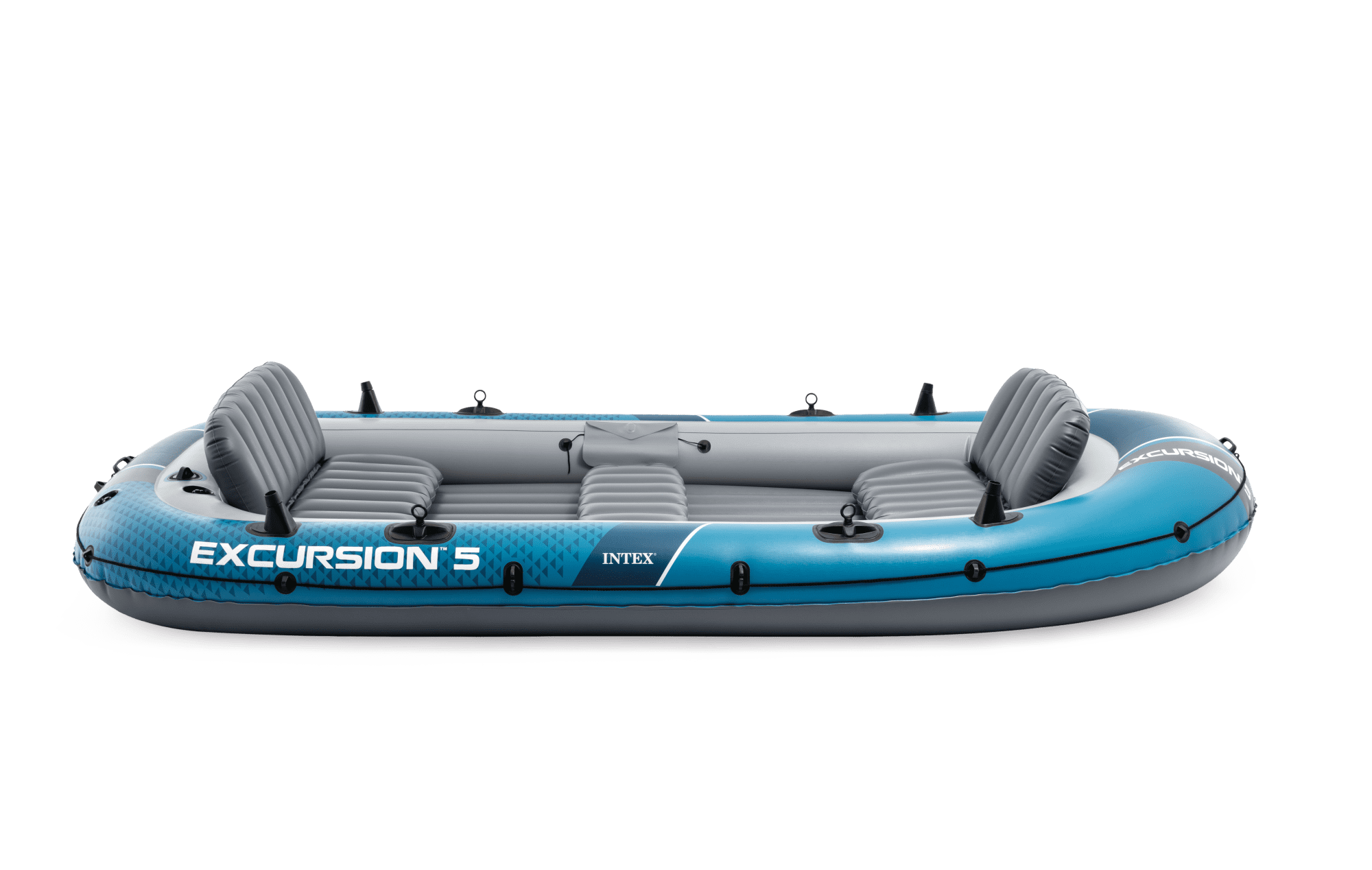 Gumenjak Excursion™ 5 izuzetno je prostran i izdržljiv čamac koji može primiti do pet osoba. Idealan je za ribolovne izlete ili obiteljske avanture, jer uključuje četiri držača za štapove i udobna sjedala s naslonima. Komplet uključuje svu potrebnu opremu: vesla, pumpu i torbu za pohranu.
