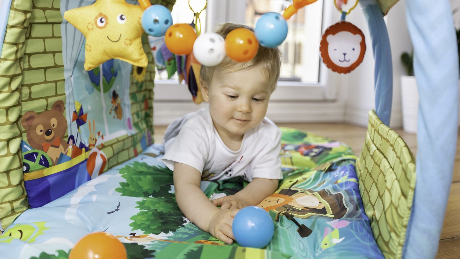 Agnes podloga nudi mogućnost dvije konfiguracije – ravna prostirka ili prostirka s kućicom. Mekani madrac izolira vašu bebu od hladnoće, a bojice pomažu u razvoju osjetila.