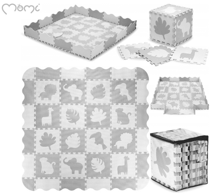 MoMi ZAWI pjenasti jastučić višenamjenski je proizvod. Riječ je o standardnoj prostirci koja štiti dijete od hladnoće tijekom igre, stalku i igrački u obliku klasične 3D slagalice. Pjenasta podstava je udobna za bebu i pruža odgovarajuću toplinsku izolaciju.