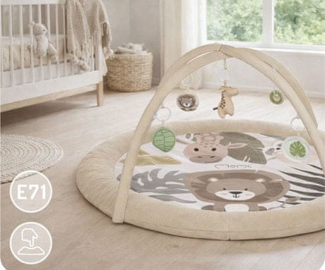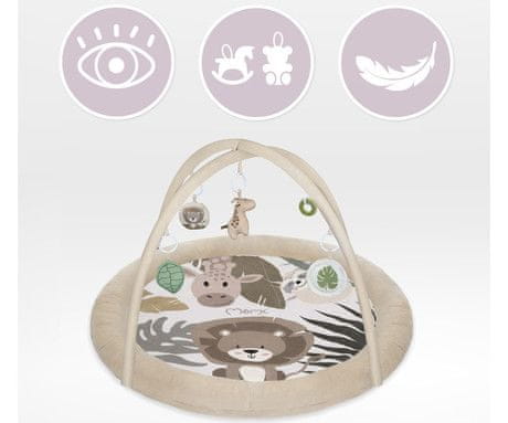 Debela, mekana i udobna podloga pruža siguran prostor za prve pokrete, okretanje i puzanje. Na lukovima s visećim igračkama razvijaju se bebina osjetila – vid, dodir i koordinacija ruku.