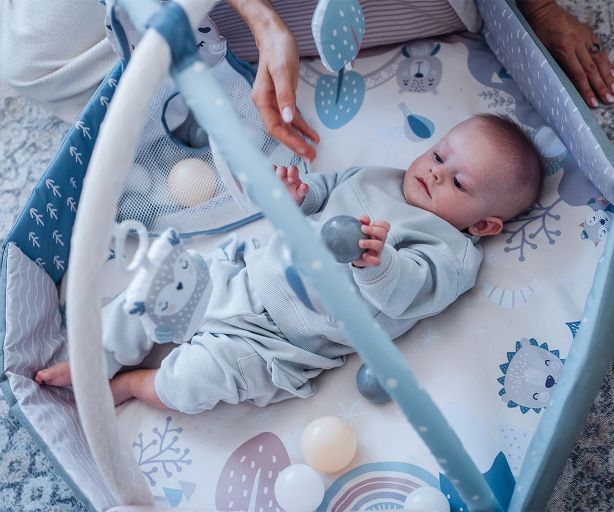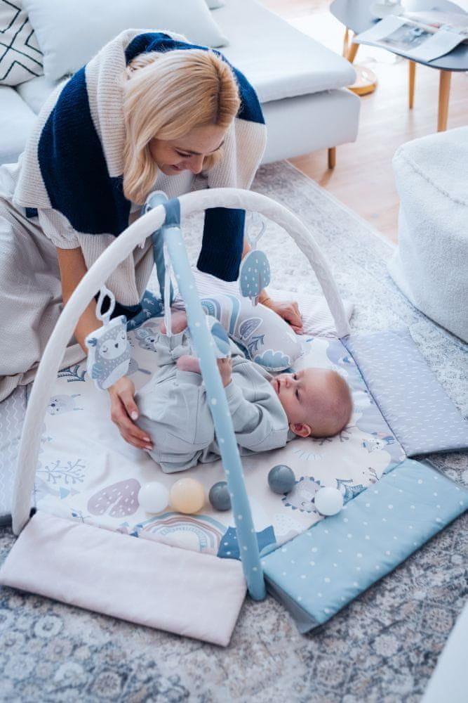 - Podloga ima senzorne elemente koji pozitivno utječu na razvoj vašeg djeteta. Senzorne igračke i njihovi zvukovi poboljšavaju iskustvo igre za bebu, a mami omogućuju trenutak odmora.