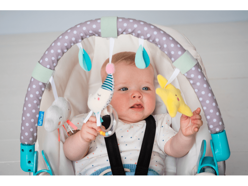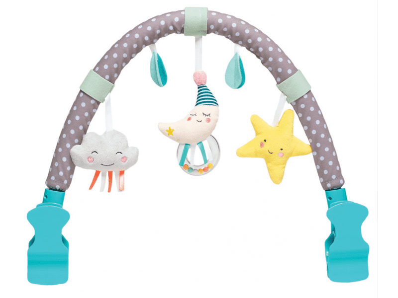 Luk za igranje Mini Moon dizajniran je za pričvršćivanje na kolica ili na autosjedalicu i zabavljat će vaše dijete u pokretu. Viseće zveckave igračke privlače djetetovu pažnju. Uz pomoć fleksibilnih plastičnih kopča možete pričvrstiti pramac na većinu dječjih kolica i autosjedalica. Razvija dječja osjetila i motoričke sposobnosti.