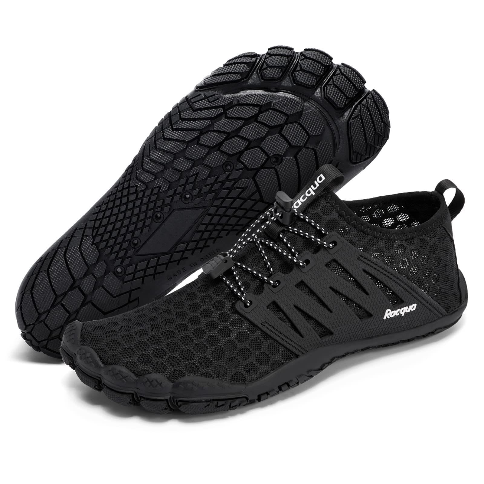 Otkrijte novu kvalitetu udobnosti tijekom vodenih avantura zahvaljujući Racqua obući koja kombinira prirodan osjećaj hodanja bosih nogu s profesionalnom zaštitom stopala. Ovaj model dizajniran je za ljubitelje zimskog kupanja, plivanja i ekstremnih sportova poput kajakarenja ili surfanja. Zahvaljujući širokom dizajnu u području prstiju, Vaša stopala zadržavaju prirodnu slobodu, a niski profil potplata osigurava stabilnost i izvrstan osjećaj podloge. Ultra-prijanjajući vanjski potplat osigurava sigurnost na skliskom kamenju u rijekama te štiti od kontakta s ježincima ili oštrim pijeskom na plaži. Racqua obuća ističe se laganošću i fleksibilnošću, predstavljajući modernu alternativu krutoj obući za vodu. Inovativni sustav drenaže s precizno dizajniranim otvorima u potplatu omogućuje trenutno odvođenje vode prema van, istovremeno sprječavajući ulazak pijeska i sitnih kamenčića unutra. Brzosušeći materijal čini obuću spremnom za ponovnu upotrebu ubrzo nakon izlaska iz vode. Njihov stilski, crni dizajn čini ih prikladnima za razne aktivnosti, od aqua aerobika do dugih šetnji obalom mora.