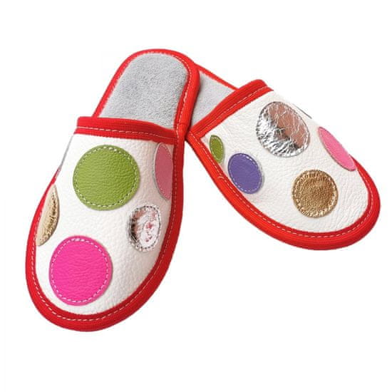 Udobne i šarmantne Kožne kućne papuče Pikice idealne su za opuštanje kod kuće tijekom cijele godine. Izrađene su od prirodne kože i imaju prepoznatljiv točkast uzorak koji svaku papuču čini posebnom. Točkice su nasumično raspoređene, pa svaka parića ima svoj unikatni izgled.