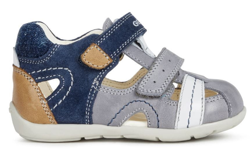 Tenisice za dječake u sivoj boji s denim jeans detaljima. Geox BALU ima uložak od ovčje kože i podlogu te završnu obradu od kože u različitim bojama. Fleksibilan potplat od termoplastične gume omogućuje prirodno savijanje na svakom koraku. Praktični Velcro za pričvršćivanje. Cijeli opis