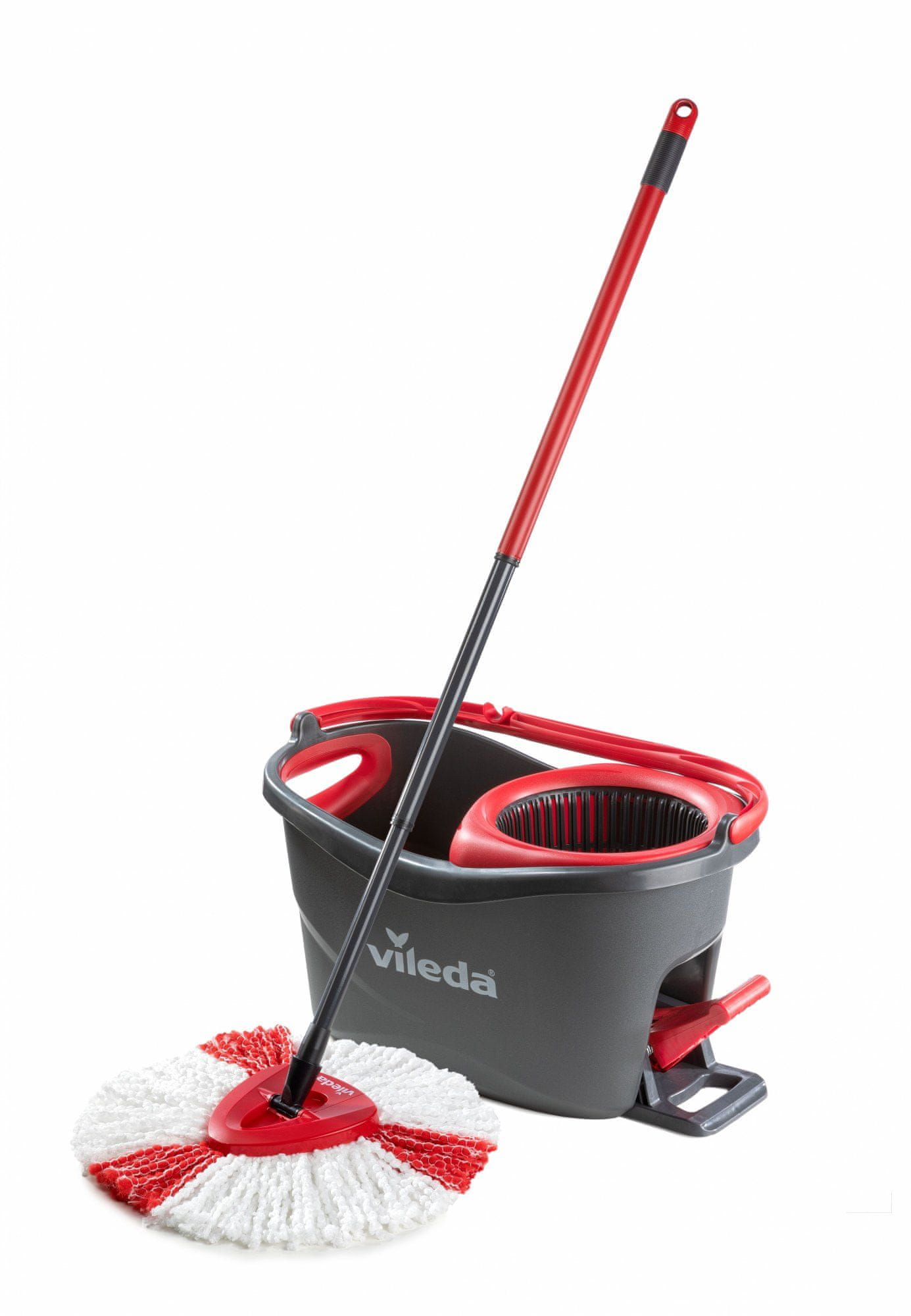 Vileda Turbo Mop komplet omogućuje brzo i temeljito čišćenje. Komplet uključuje visokokvalitetnu 2-u-1 krpu od mikrovlakana i kantu s cjediljkom.