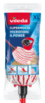 Mop SuperMocio Microfibre & Power marke Vileda prikladan je za korištenje sa SuperMocio kantom za cijeđenje. Kombinacija mikrovlakana i abrazivnih vlakana za jednostavno i učinkovito čišćenje.