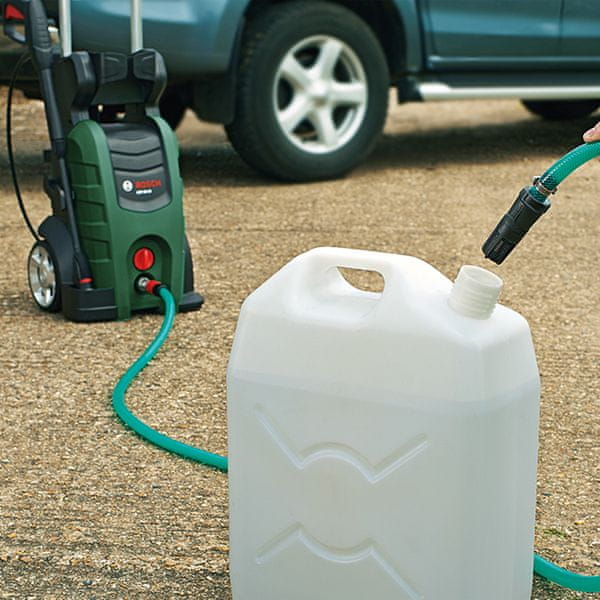 Bosch visokotlačni perači mogu automatski crpiti vodu iz vanjskih izvora, poput spremnika za kišnicu. To omogućuje veću fleksibilnost i mobilnost prilikom čišćenja.