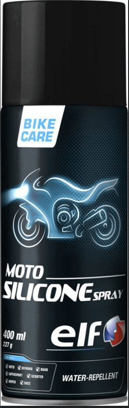 ELF MOTO SILIKONSKI SPREJ je aerosol koji štiti i njeguje metalne, kožne i plastične dijelove motocikla, ostavljajući proziran, vodoodbojan sjaj.