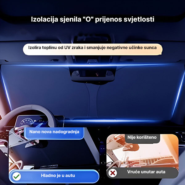 Primjena: Postavite na unutrašnjost vjetrobranskog stakla i osigurajte sa bočnim sjenilima