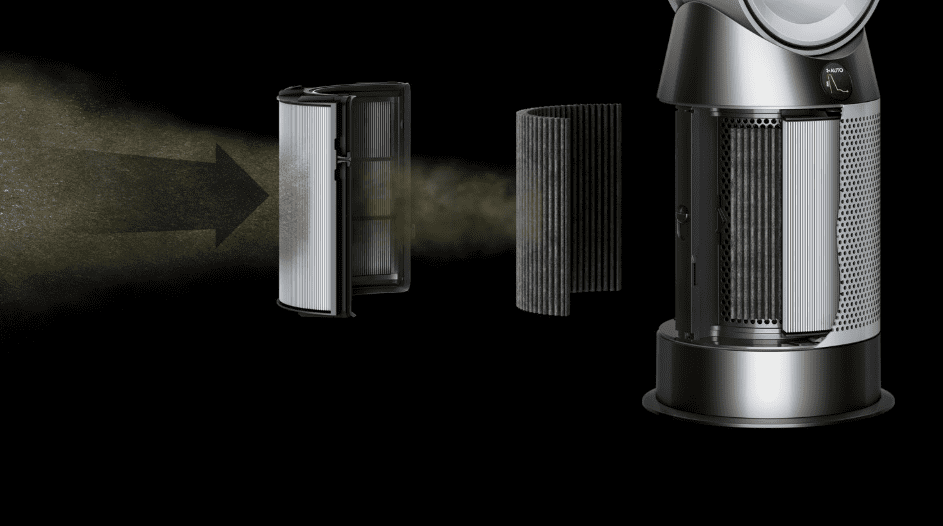 Potpuno zatvoreni sustav filtracije kombinira HEPA filter i filter s aktivnim ugljenom za uklanjanje plinova. Također uklanja pelud iz prostorije i smanjuje količinu plijesni koja se nalazi u zraku.