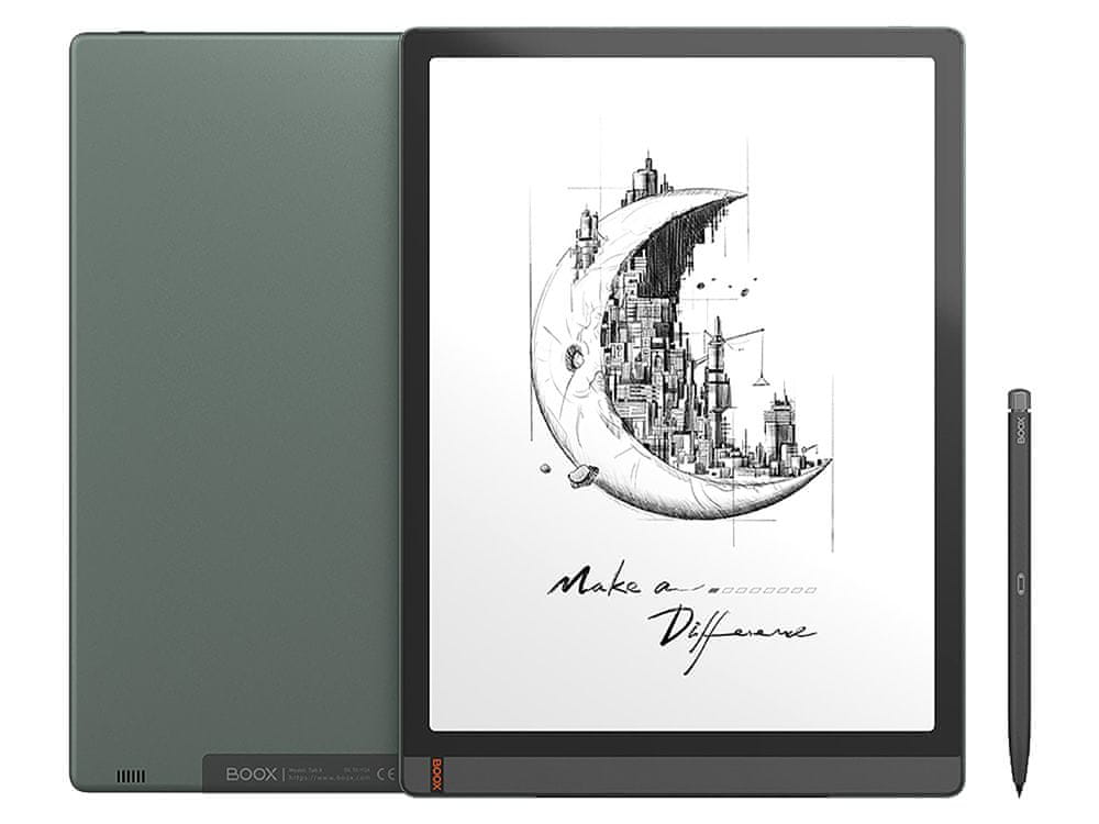 Tab X od 13,3 inča izgleda kompaktno sa svojim zaobljenim kutovima i tankim okvirom, a njegov poseban izgled upotpunjuje atraktivna crno-zelena kombinacija boja koja je primjerena i ženama i muškarcima. Premaz protiv otisaka prstiju na stražnjoj strani kućišta također održava e-čitač čistim i elegantnim.