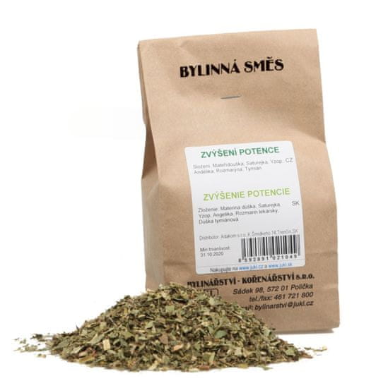 JUKL Biljni čaj Povećanje potencije biljna je mješavina koja pridonosi boljoj prokrvljenosti spolnih organa – kod muškaraca i kod žena. Kod žena dodatno podupire rad maternice. Čaj pomaže u održavanju zdrave funkcije jetre, podržava probavu i prirodnu detoksikaciju tijela. Prikladan je za oba spola.