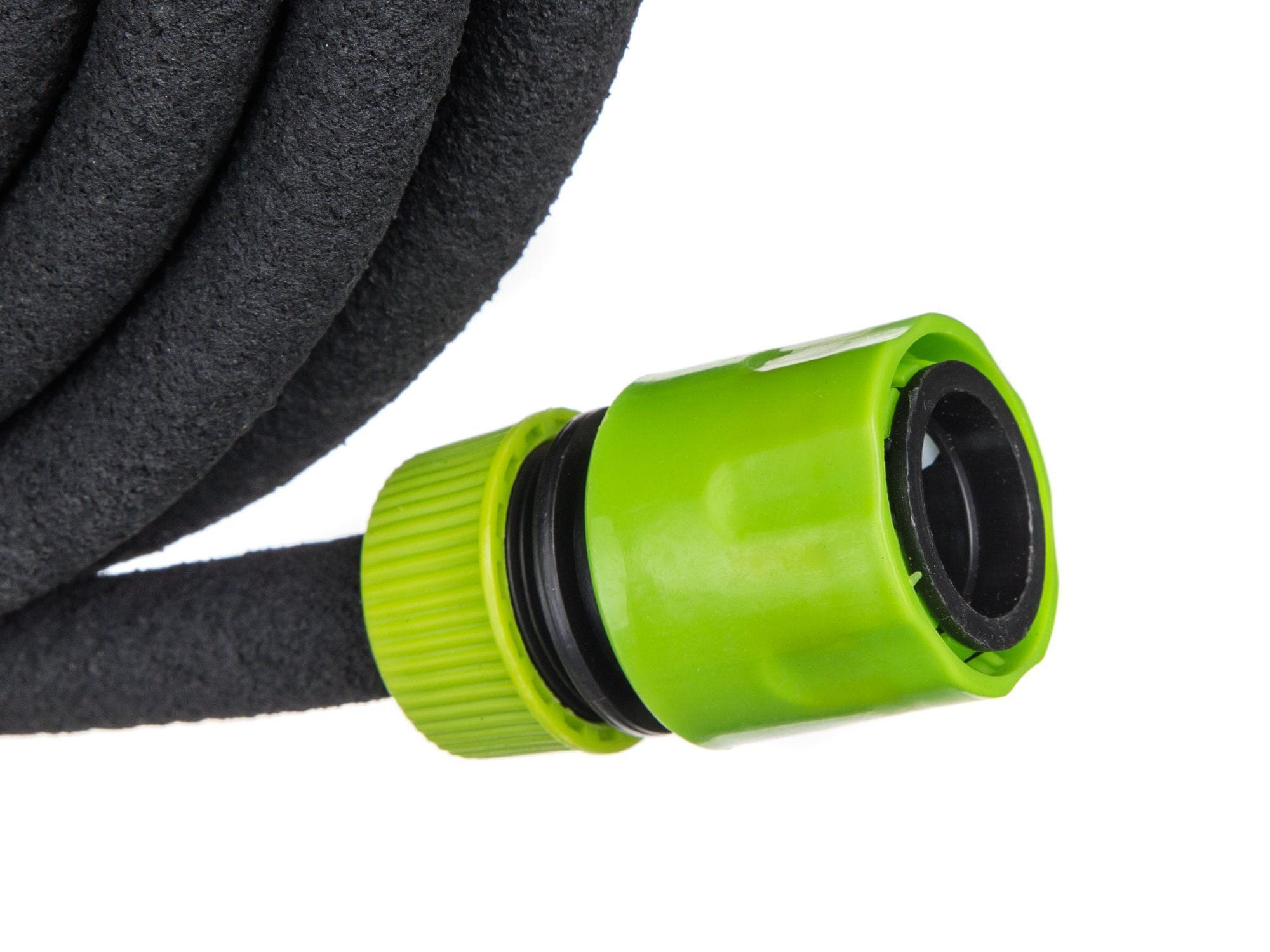 Crijevo za navodnjavanje dužine 15 m marke Happy Green. Sastav 100% gume. Također djeluje pri vrlo niskom tlaku i štedi do 70% potrošene vode. Postavljanje površine i dubine s najviše 15 – 20 cm ispod tla. Maksimalni radni tlak je 5 bara. Ne može se koristiti za distribuciju vode za piće.