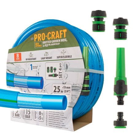 Vrtno crijevo Procraft PR-3KGH1925F 3-slojno, 3/4" 25 m s priborom