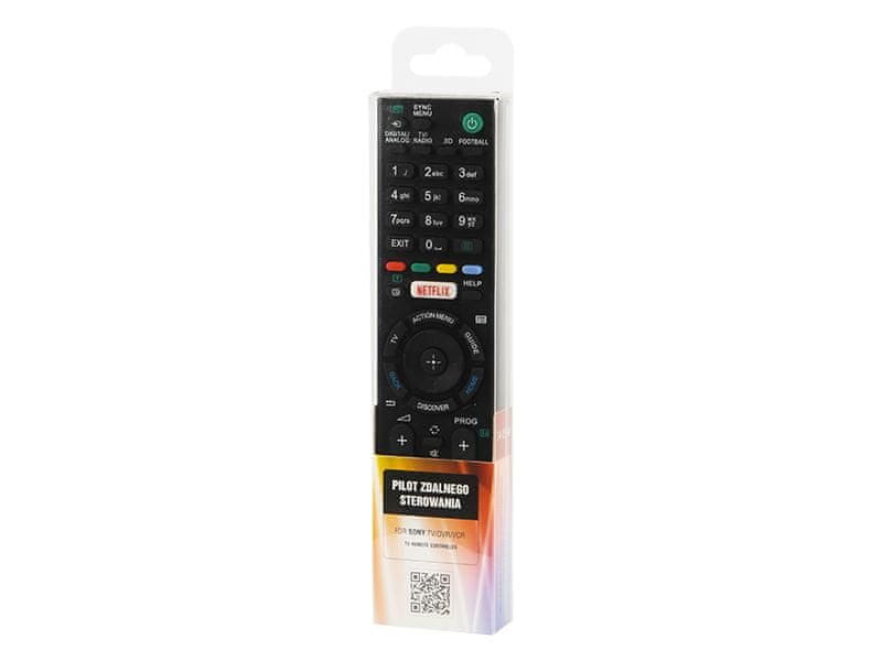 Namjena: SONY uređaji: TV, VCR, DVRRadni domet: 8 mNapajanje: 2 x AA baterije (baterije nisu uključene)Univerzalni daljinski upravljač koji omogućuje upravljanje sljedećim SONY uređajima: TV, VCR, DVR. Proizvod ima potrebne tipke za osnovno upravljanje ovim uređajima. Jednostavan dizajn i raspored osiguravaju potpuno jednostavno i intuitivno rukovanje. Za izradu pilota korišteni su visokokvalitetni materijali koji osiguravaju dugu trajnost proizvoda. Idealno za upravljanje vašim uređajem kada se tvornički daljinski upravljač izgubi ili ošteti.Univerzalno – odgovara većini SONY TV, VCR i DVR modelaVisoka funkcionalnost – baš kao i originalni daljinski upravljačiIzvrsna kvaliteta – u izradi su korišteni najkvalitetniji materijaliJednostavno i intuitivno upravljanjeVelik broj gumba za upravljanje mnogim funkcijama TV-aGumbi otporni na habanjeUgodan za držanje