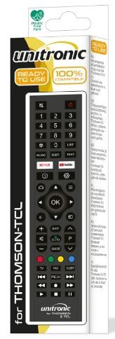 Univerzalni daljinski upravljač Unitronic JL1707/UNI pouzdano je i praktično rješenje za upravljanje Thomson & TCL televizorima. Namijenjen je kao potpuna zamjena za originalni daljinski upravljač – bez kompliciranog postavljanja ili programiranja. Umetnite baterije i daljinski upravljač je odmah spreman za upotrebu.