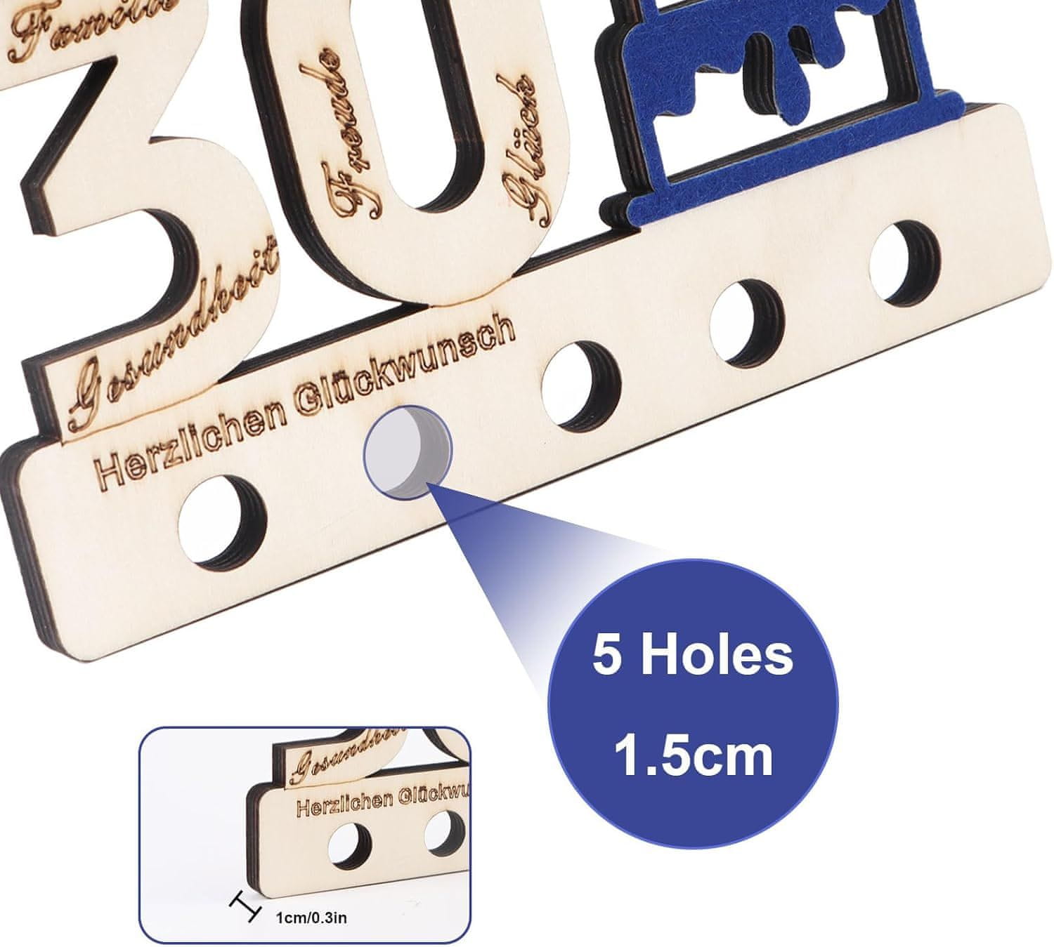 Predstavljamo jedinstveni poklon za 30. rođendan u obliku drvene ploče koja služi kao knjiga gostiju. Ova elegantna i originalna dekoracija izrađena je od visokokvalitetnog drva, precizno laserski izrezanog, što osigurava savršenu završnu obradu bez oštrih rubova ili iverja. Ploča je dimenzija 11,2 × 22,2 cm, a debljina joj je 5 mm, što je čini dovoljno velikom za upisivanje želja ili imena gostiju. Ploča ima lijepo ugravirane riječi koje joj daju poseban šarm i jedinstvenost. Gosti mogu samostalno zapisati svoje želje, stvarajući trajnu uspomenu na poseban dan. Ploča se odlično koristi kao knjiga gostiju, rođendanska čestitka ili originalni novčani poklon. Zahvaljujući 5 otvora za novčane poklone, moguće je umetnuti novac ili smotane bonove, što ovaj poklon čini još posebnijim.