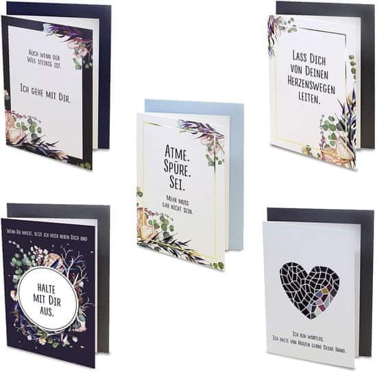 Set kartica sućuti: 15 elegantnih kartica (10.5×14.8 cm) s 15 omotnica za izražavanje suosjećanja u teškim trenucima. 5 različitih motiva za žalost, rastanak i stres. Visoka kvaliteta, proizvedeno u Njemačkoj.
