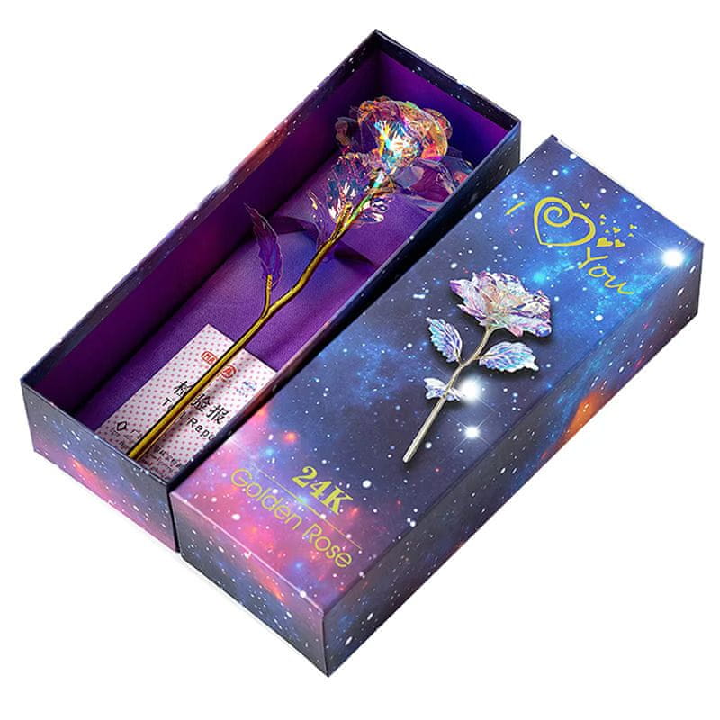 Paket uključuje: 1 x Galaksija Ruža 1 x Zlatno postolje ‚LOVE‘ 1 x Poklon-kutija