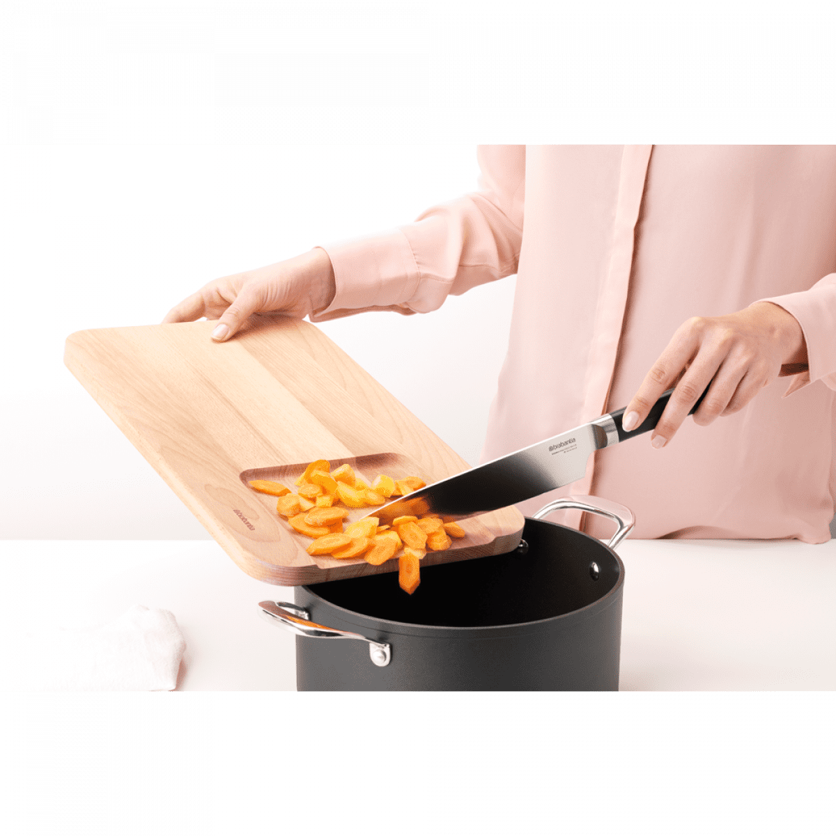 • Brabantia održiva drvena daska za rezanje povrća omogućuje višu razinu rezanja povrća, začinskog bilja i voća.