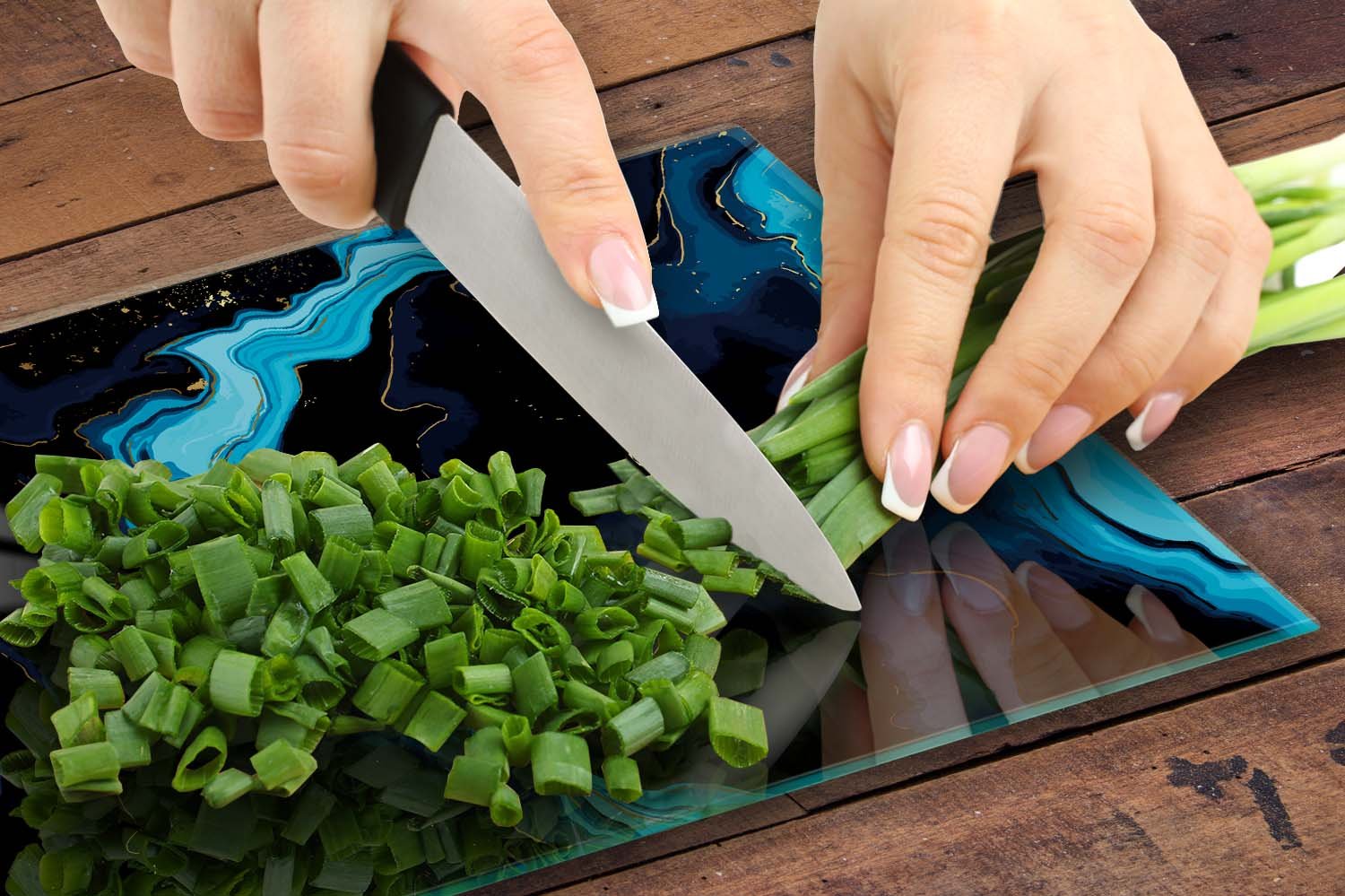Staklena daska za rezanje – higijenska i otporna na mirise, idealna za sjeckanje povrća, mesa ili kruha.