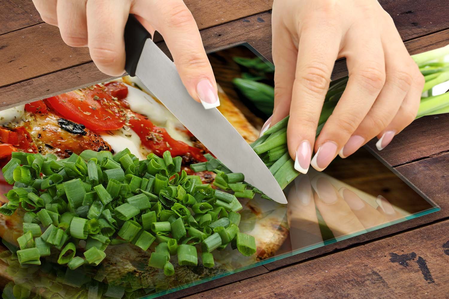 Staklena daska za rezanje – higijenska i otporna na mirise, idealna za sjeckanje povrća, mesa ili kruha. ✔