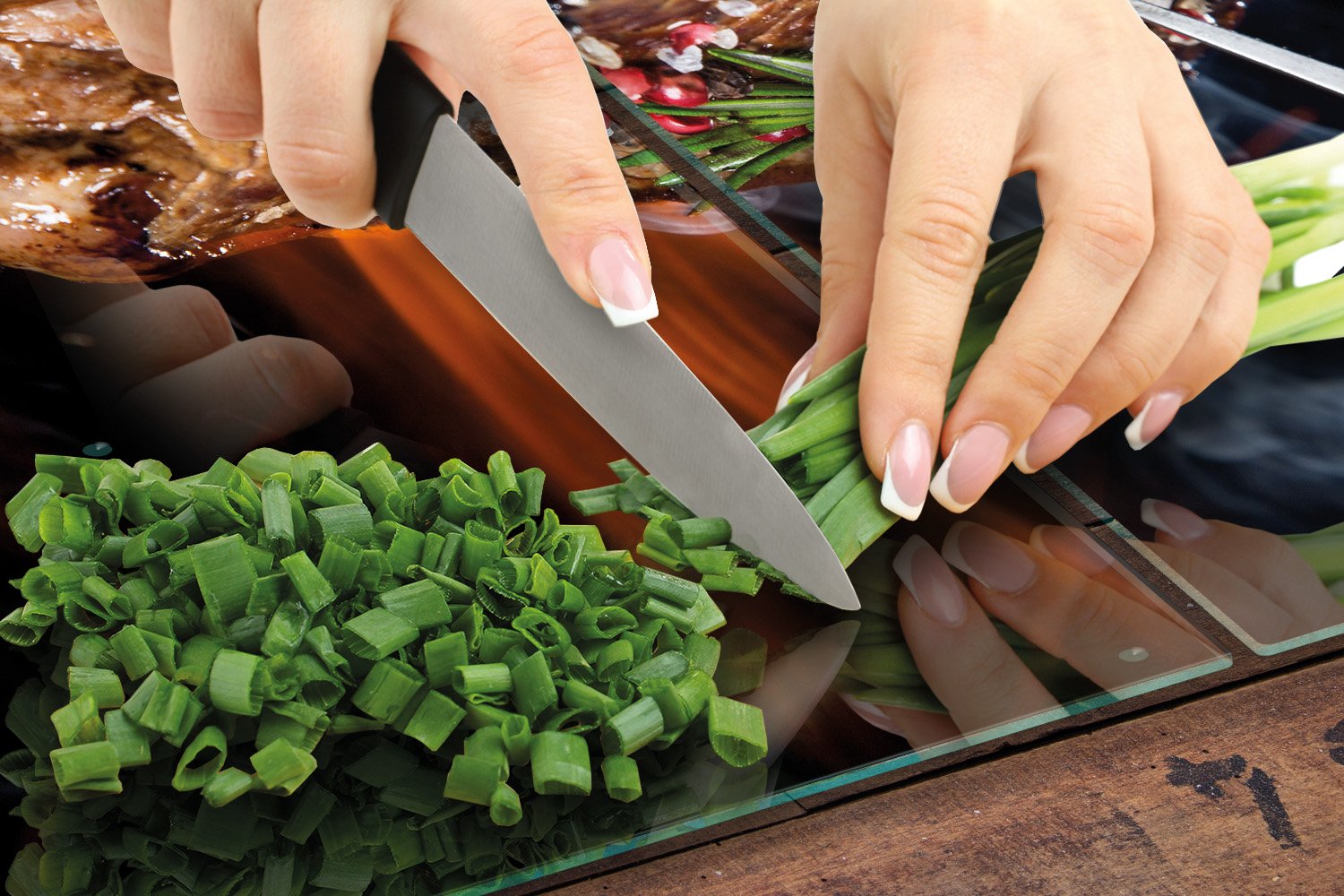 Staklena daska za rezanje – higijenska i otporna na mirise, idealna za sjeckanje povrća, mesa ili kruha. ✔