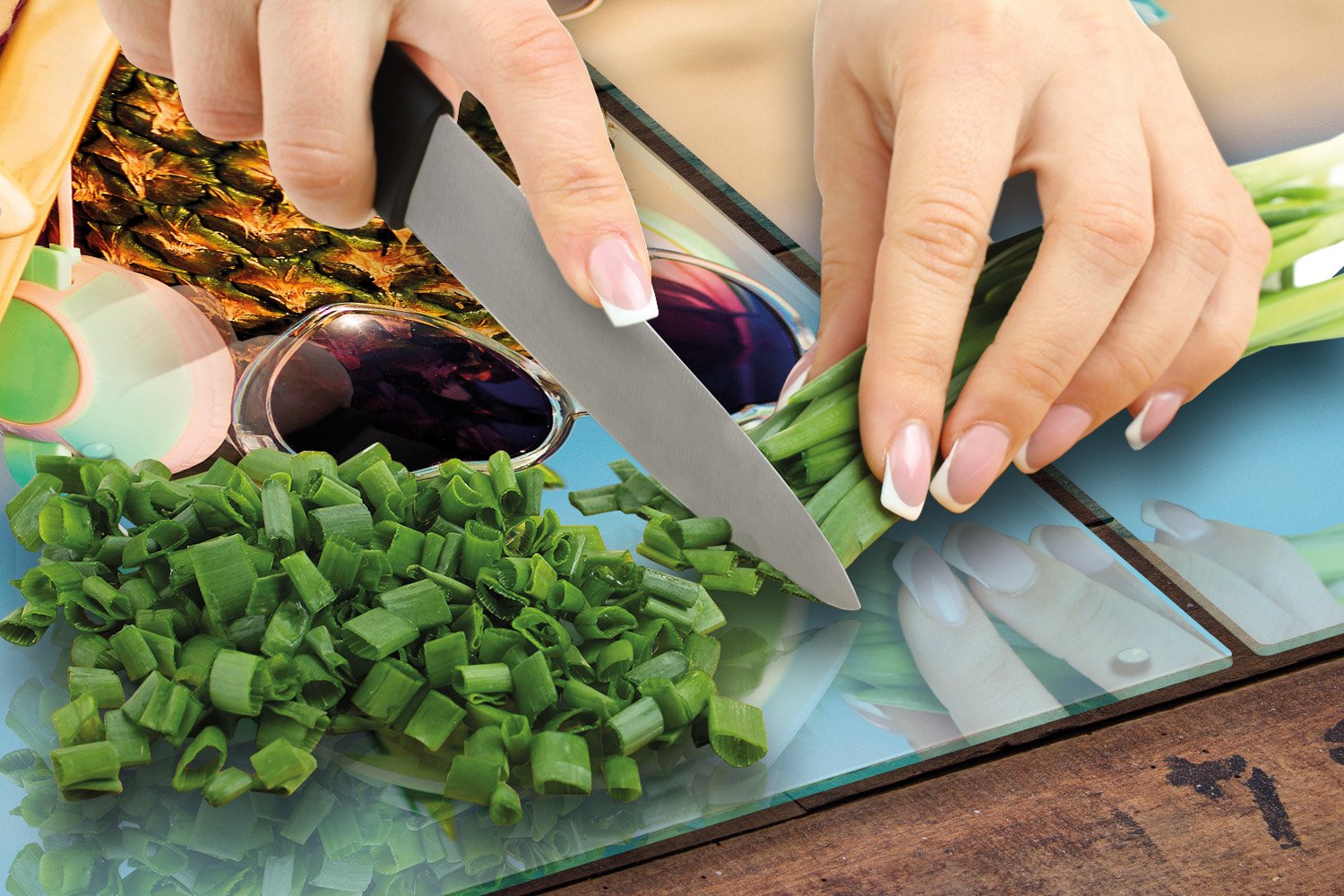 Staklena daska za rezanje – higijenska i otporna na mirise, idealna za sjeckanje povrća, mesa ili kruha. ✔