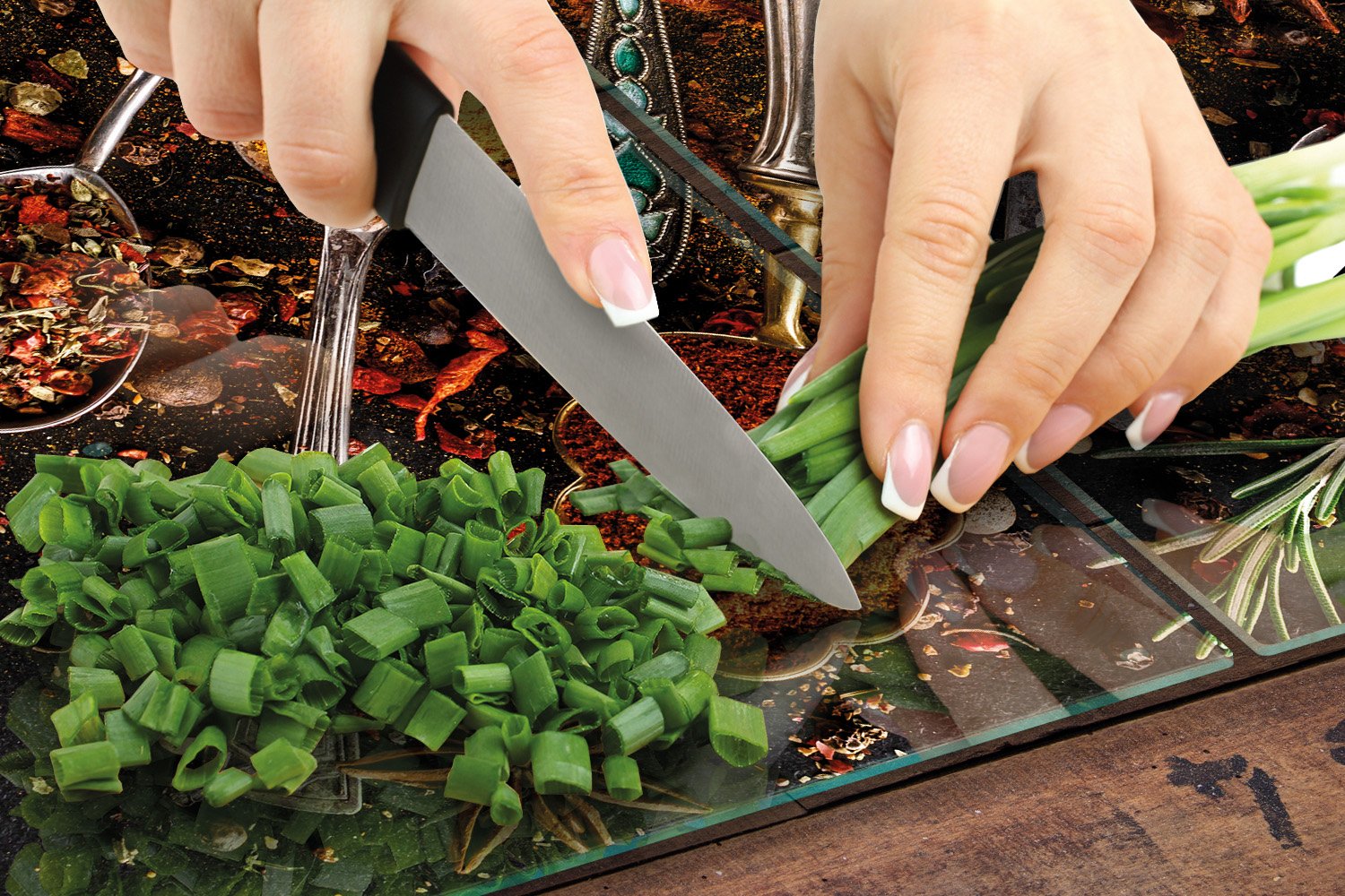 TMK STAKLENI TANJUR i DASKA ZA REZANJE 100x52 ZAČINI