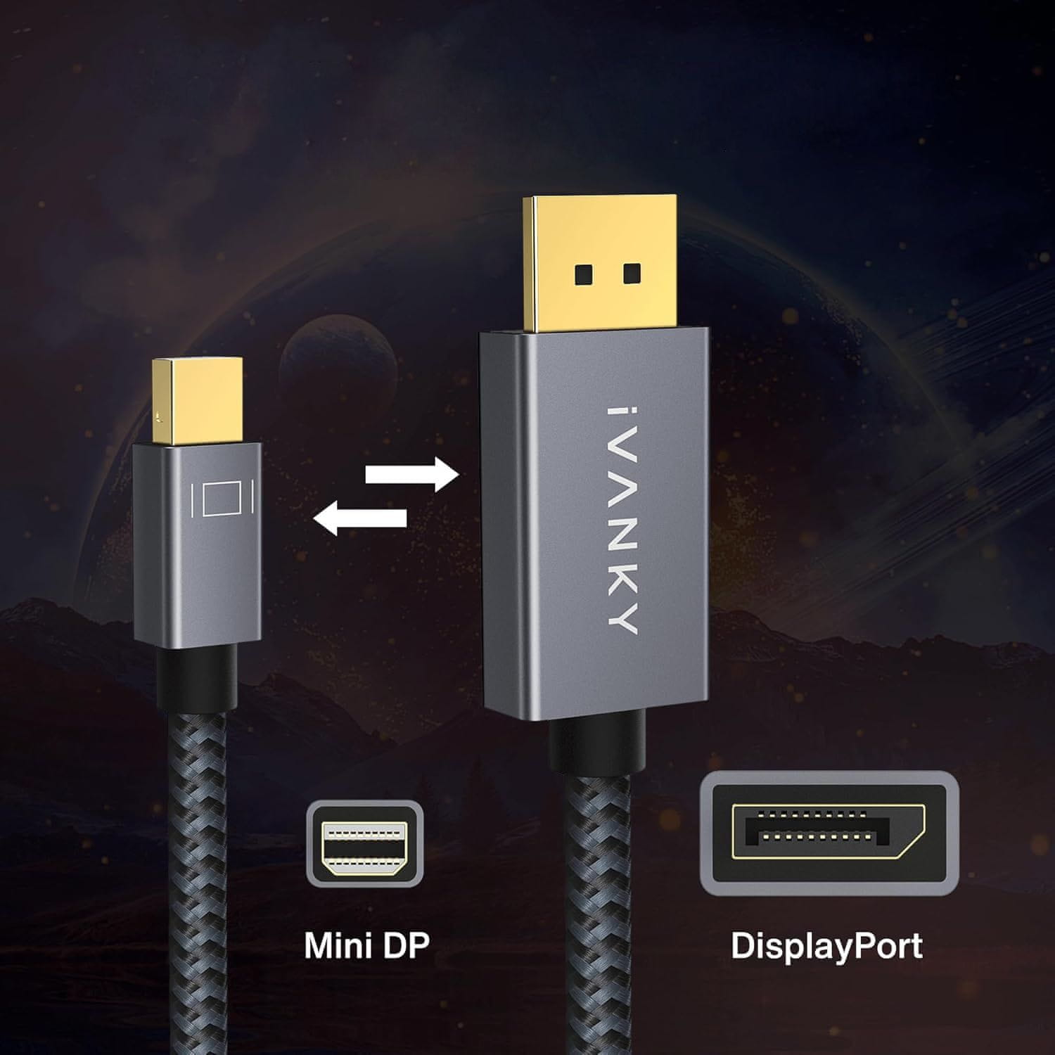 iVANKY Kabel Mini DisplayPort do DisplayPort 4K 60Hz 1m Sivi