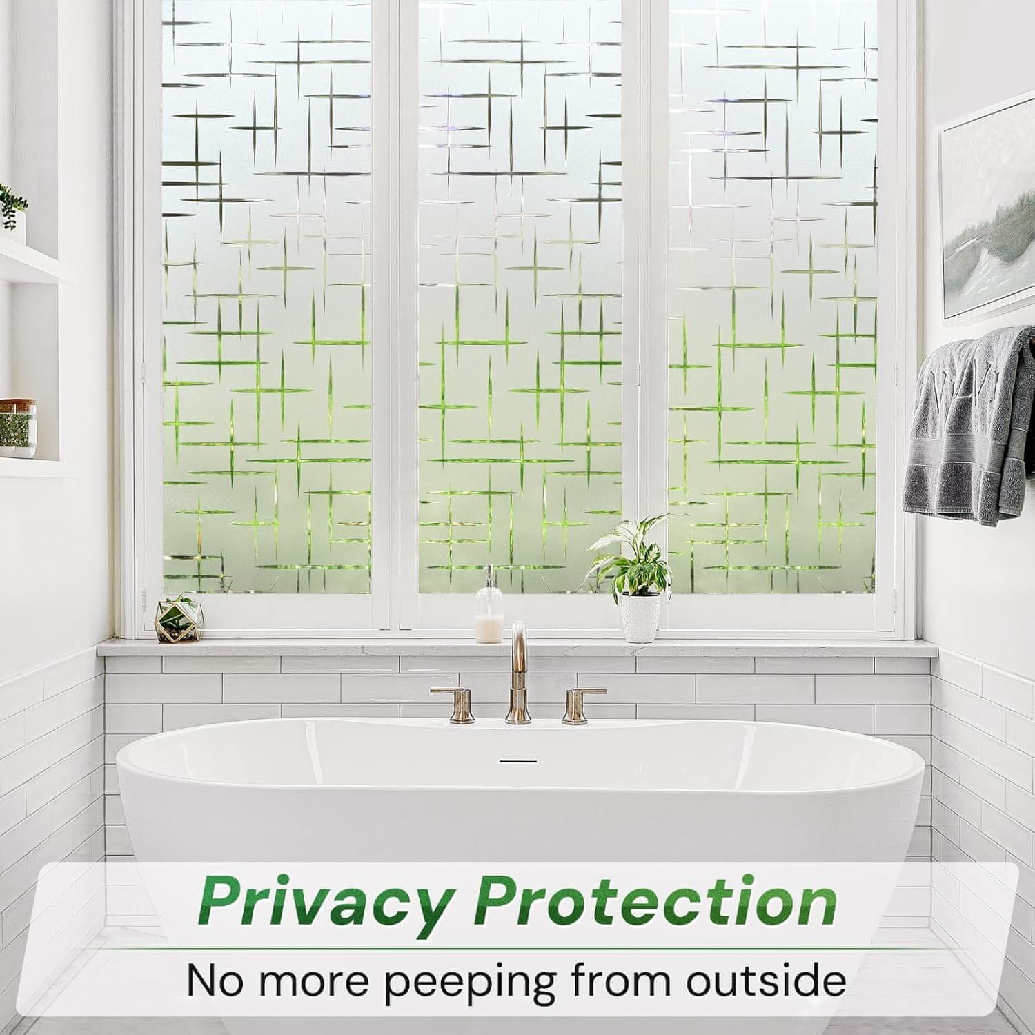 Nikcorp Samoljepljiva folija za staklo za privatnost, efekt mliječno staklo, križni uzorak za kupaonicu i ured, 44,5 x 400 cm