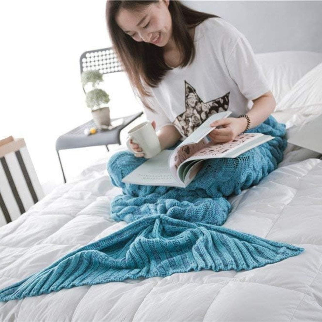 VIVVA® Pokrivač s repom sirene 180×40 cm, mekan i topao poliester, idealan za opuštanje i poklon za djevojke | MERMIDREAM, plava